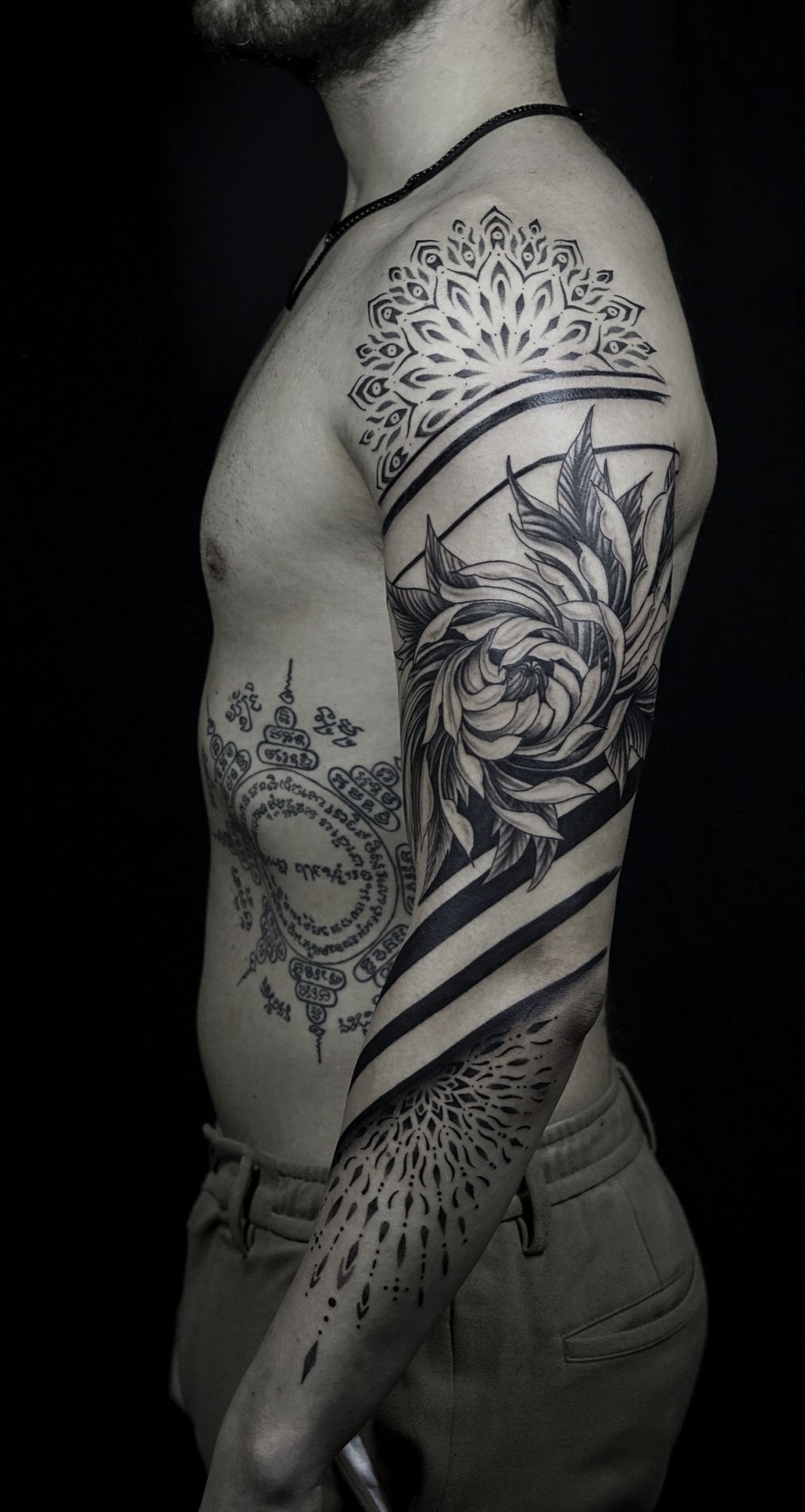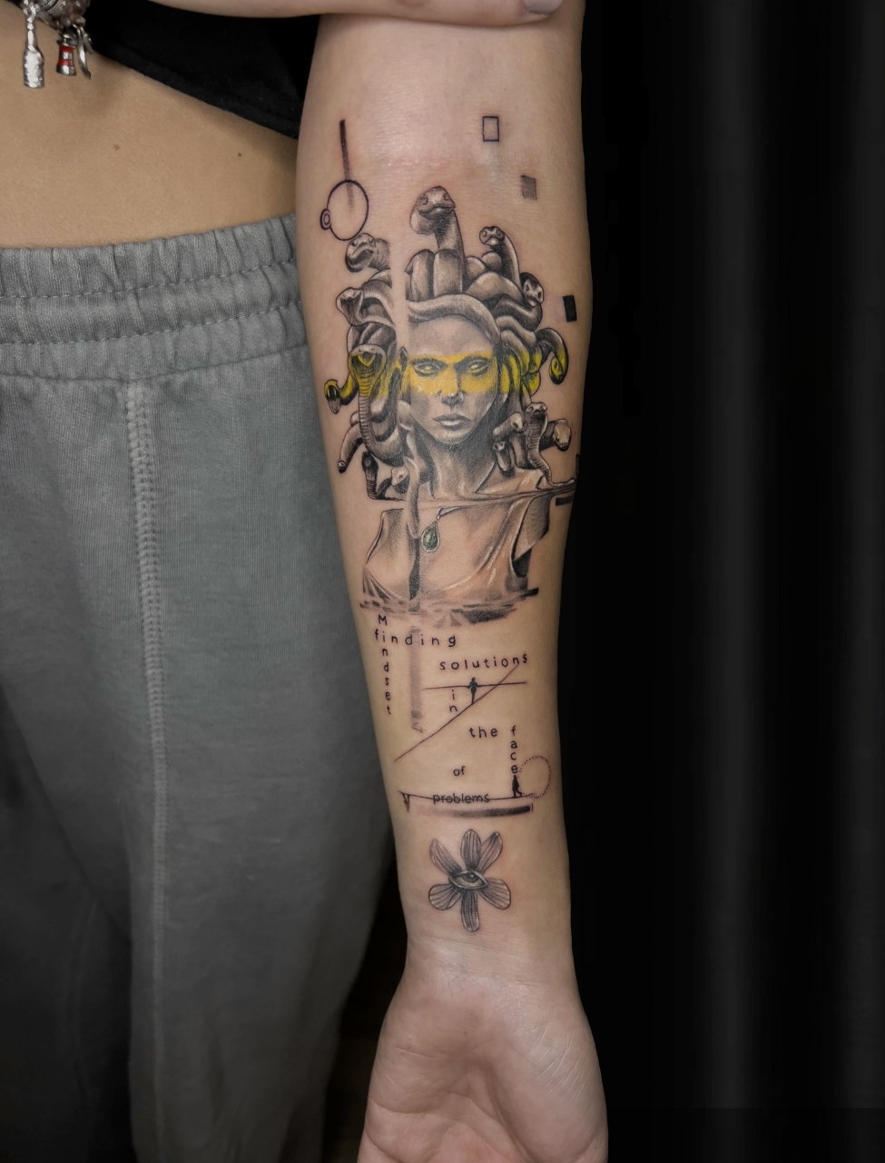 For me, tattooing is not just an image; it’s a story filled with emotions and memories that I immortalize on the skin, elevating it to timelessness. My goal is to provide each client with a special and lasting experience that reflects their personality and a significant moment in their life.